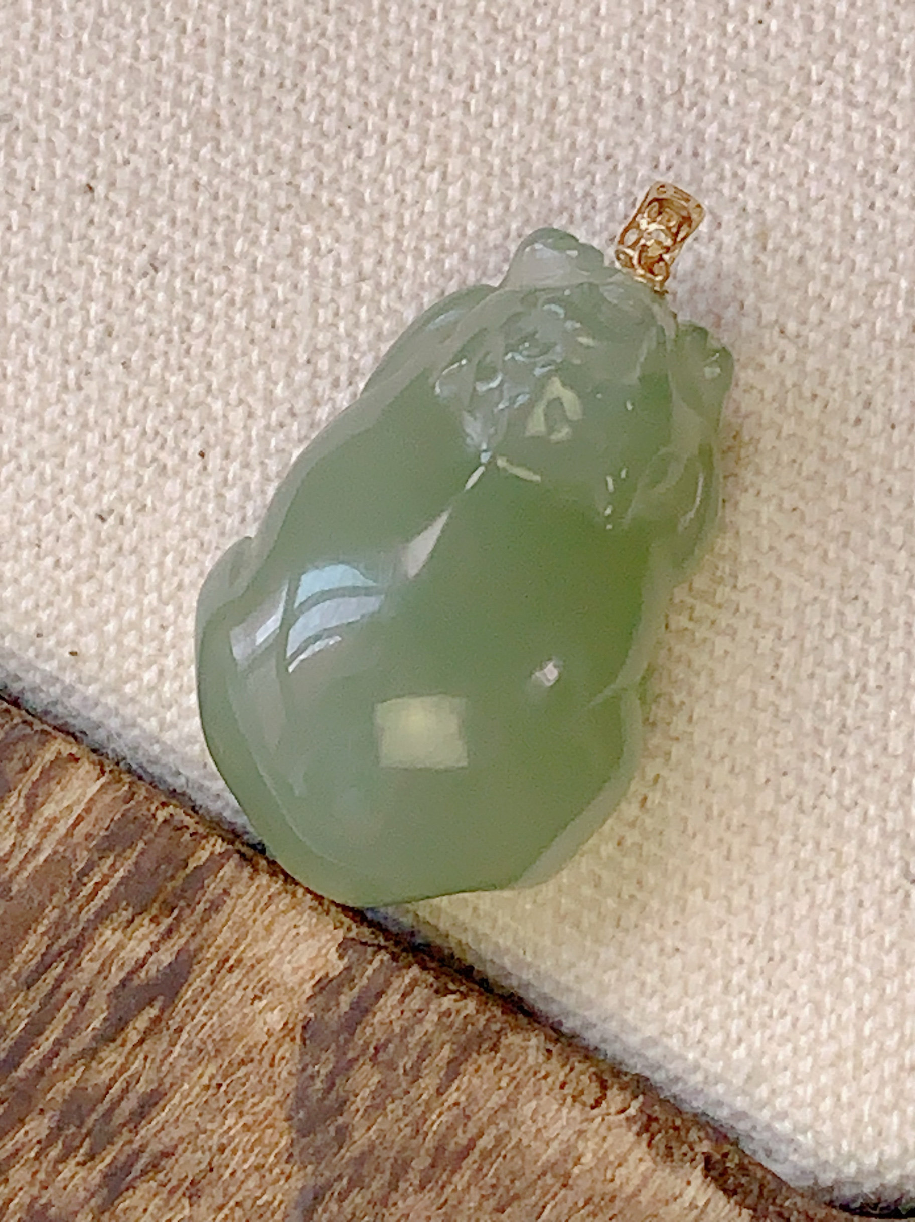 可言美玉石天然和田玉小胖貔貅18K金精致吊坠项链送绳